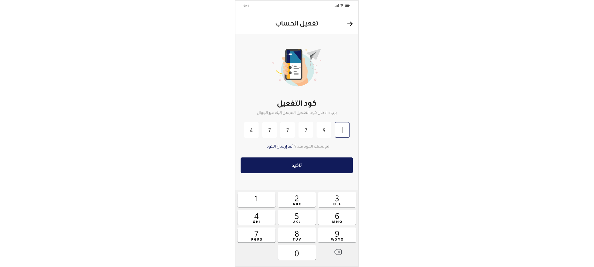 قم بادخال كود التفعيل المرسل لرقم الهاتف المسجل به