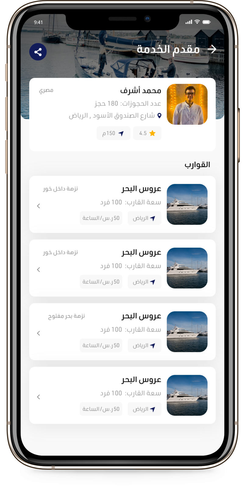 تصفح مقجمى الخدمات واختر مقدم الخدمة المناسب لك وحدد رحلتك والقارب الذى تريد